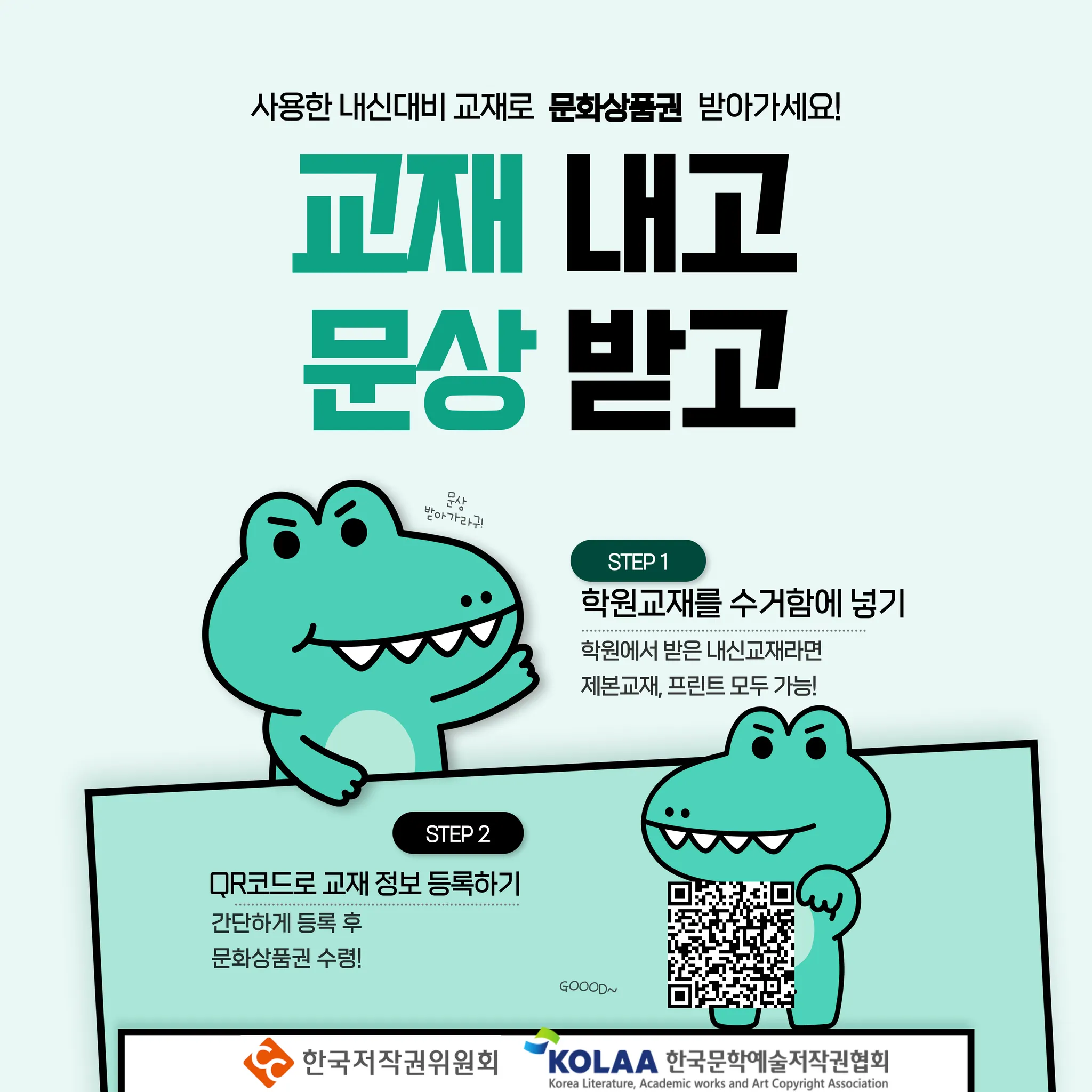 서브 메시지:"사용한 내신대비 교재로 문화상품권 받아가세요!"