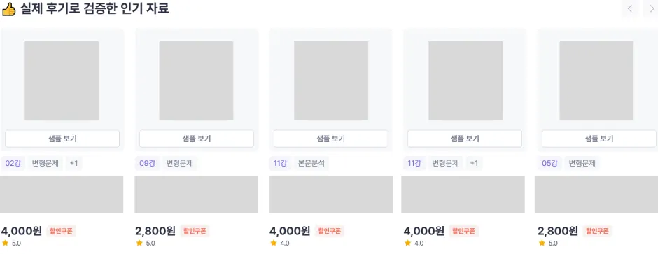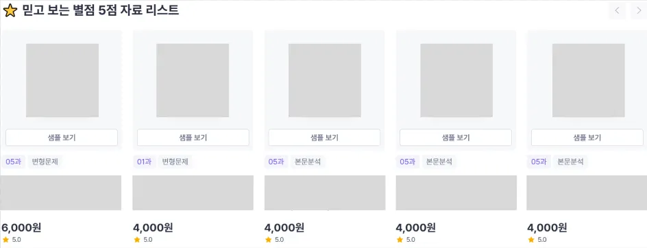 후기가 있는 자료는 상단에 노출되어 구매 전환율을 높이는데 도움이 될 수 있어요.