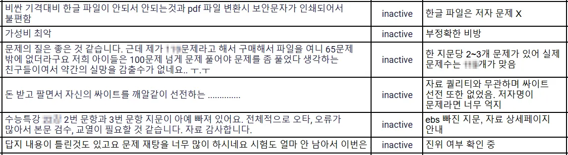위 운영 기준에 해당하거나 자료의 오류 및 설명이 잘못된 부분에 대해 작성된 후기일 경우