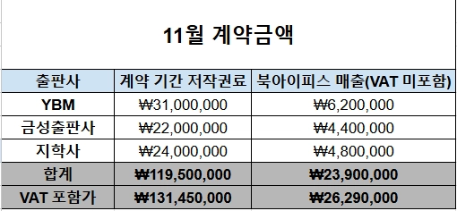 11월 대리중개 계약 vat 미포함 총 23,900,000원 으로 마무리 함