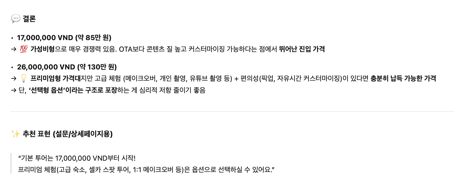 가격 | KRW 140만원 / VND 2600만동 → 옵션 포함이라서 사이트 노출은 더 싸게