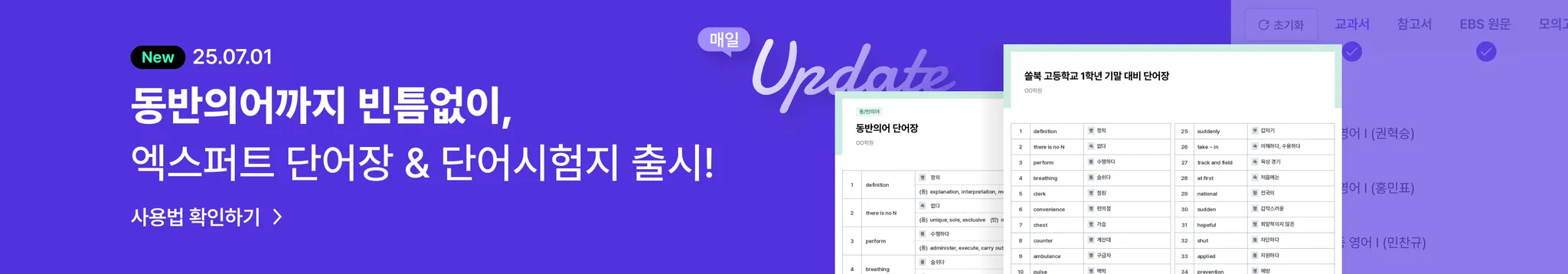 단어장 & 단어시험지를 만들기 위해서는 엑스퍼트 이용권이 필요해요!