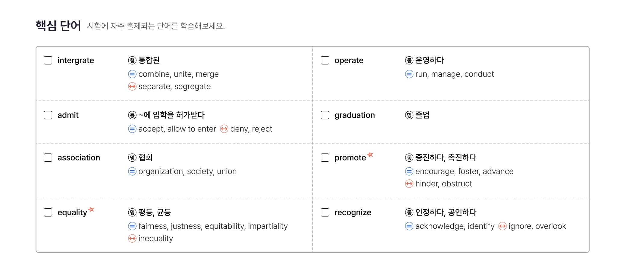 <핵심 단어> 는 본문에 나온 단어들 중, 시험에 자주 출제되는 단어를 모아볼 수 있어요.