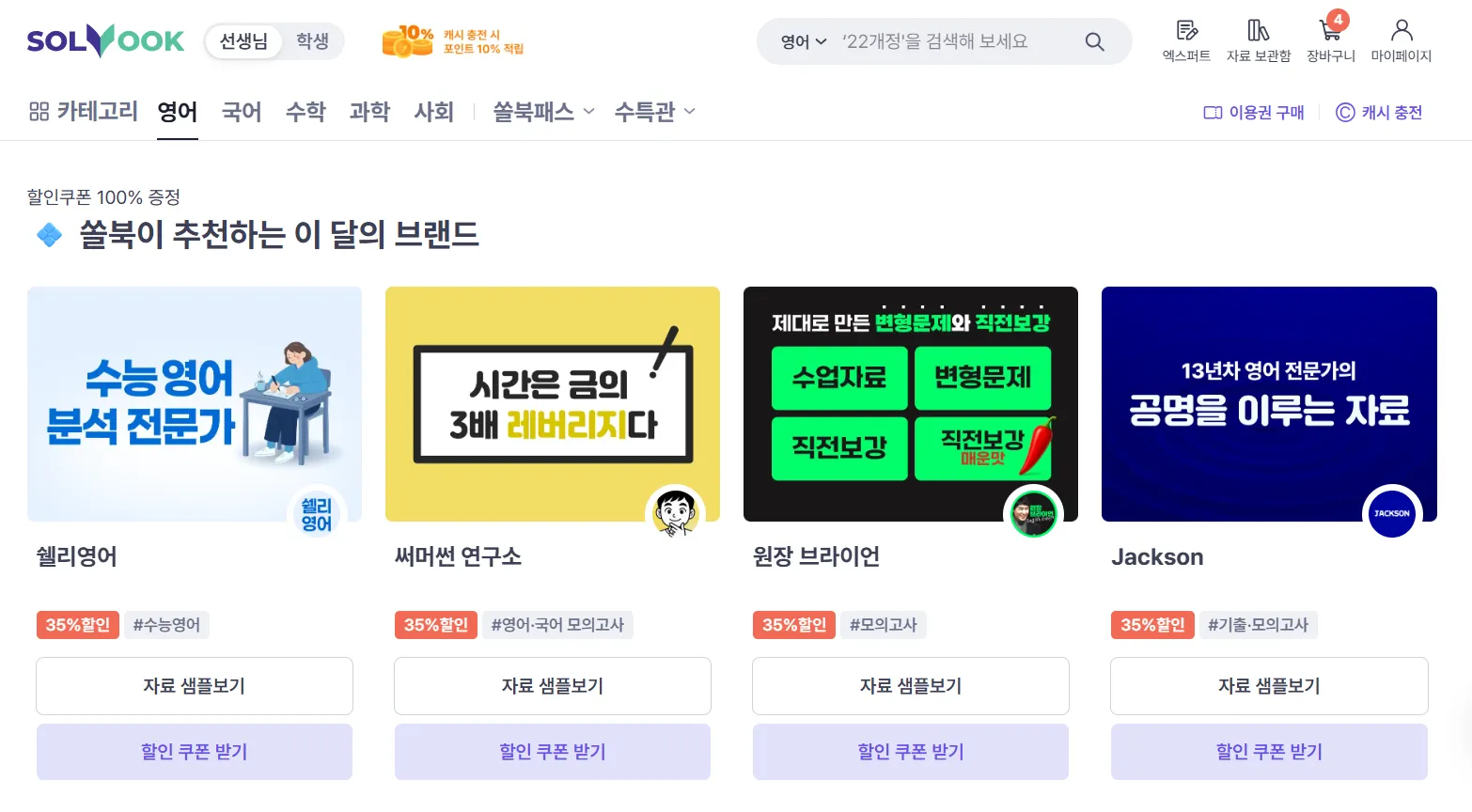 매 달 쏟아지는 혜택, ‘이 달의 브랜드’: 매달 쏠북이 엄선한 추천 브랜드를 소개하며, 고객님이 보다 넓은 범위에서 플랫폼을 활용하실 수 있도록 안내합니다. 할인 쿠폰을 제공하여 부담 없이 저자의 자료를 경험해보실 수 있도록 지원합니다.