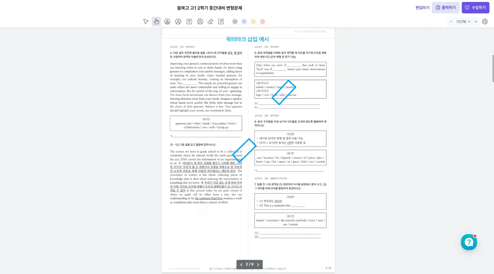 엑스퍼트에서 제작한 자료에는 사용자별 워터마크가 자동 삽입되어, 저작권이 더욱 안전하게 보호돼요.