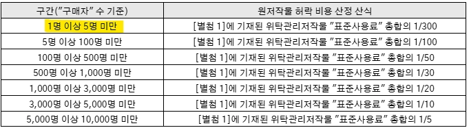 원저작물 이용 허락 비용 ⇒ 수수료 20%