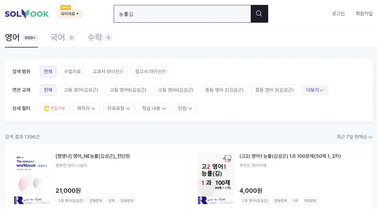 [검색 범위] 에서 찾으시는 상품의 종류를 선택할 수 있어요. 교과서와 참고서 라이선스는 수업 자료가 아닌 교재 저작권 이용 권리 상품을 말해요.