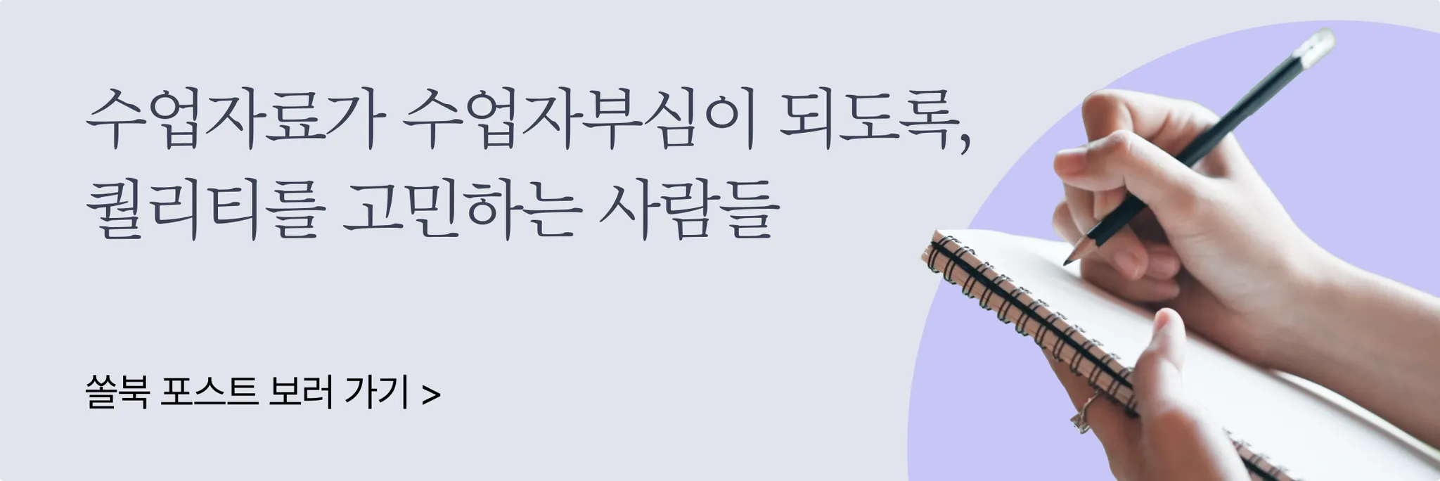 수업의 퀄리티를 높여주는 좋은 수업자료가 궁금하시다면, 하단 배너를 꼭 클릭해 보세요!