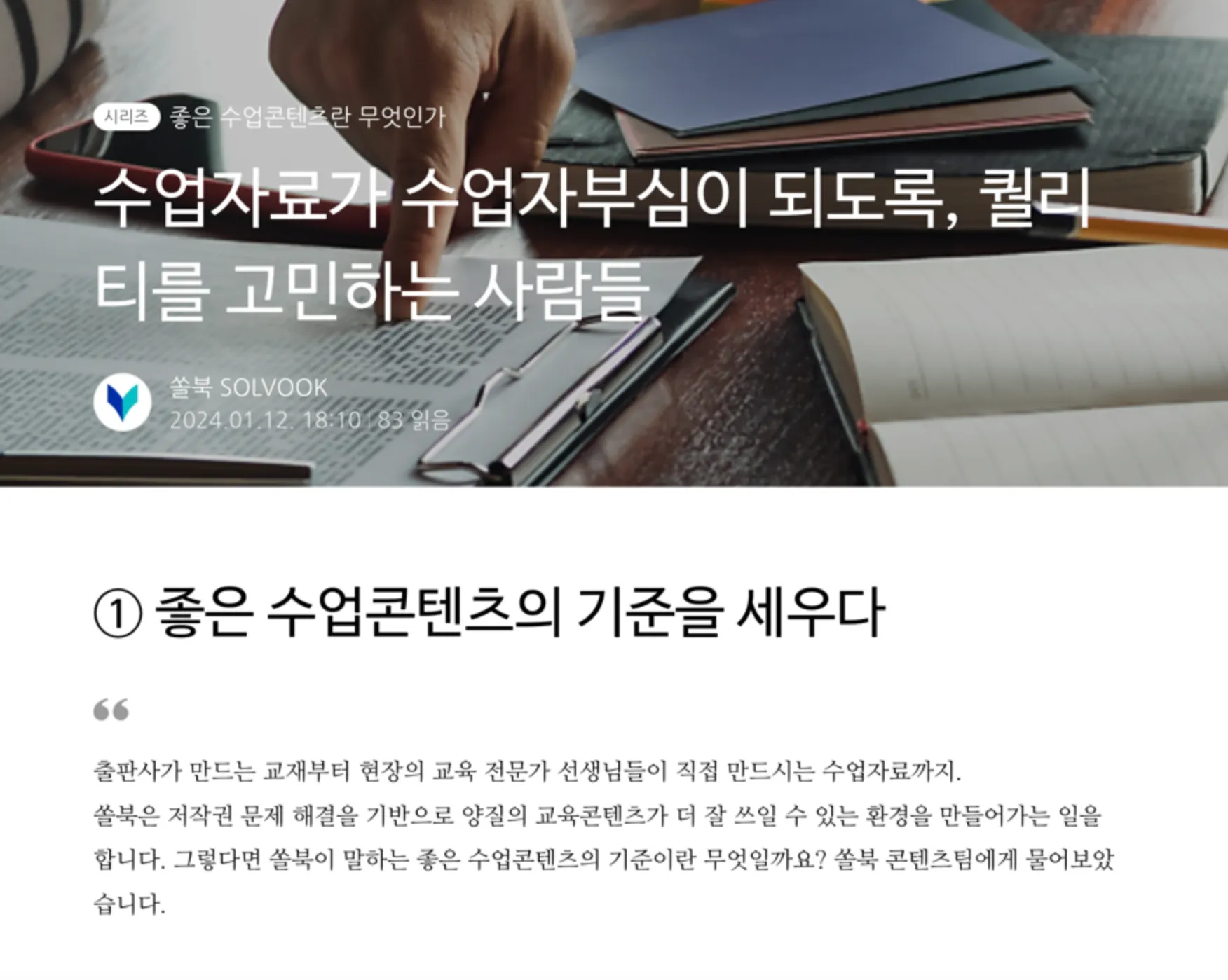 현재 네이버 포스트에 1편 <좋은 수업콘텐츠의 기준을 세우다> 가 업로드되었습니다