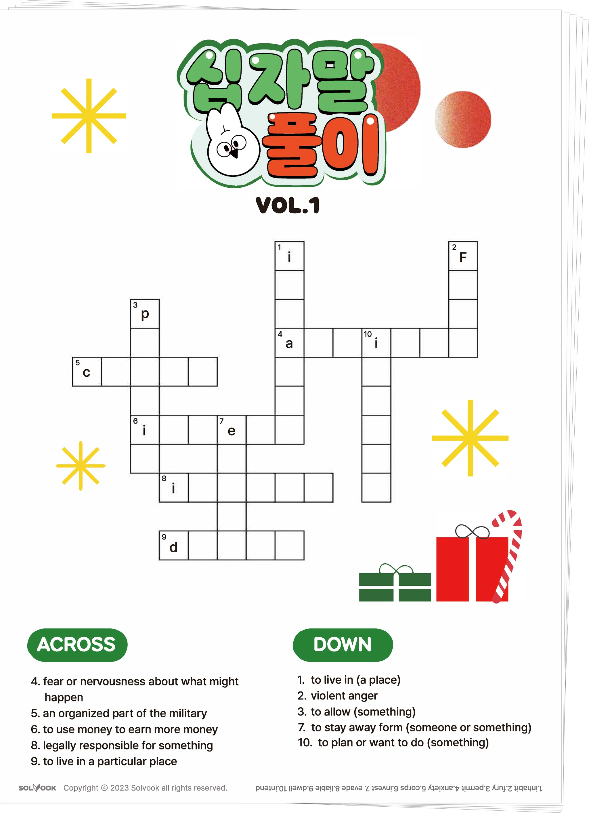 이번 연말, 쏠톡이 제공해 드리는 CROSS WORD를 VOCA 수업에 활용해 보시는건 어떨까요?