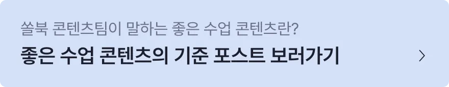 쏠북 콘텐츠팀이 말하는 좋은 수업 콘텐츠의 기준 포스트를 읽어주세요.