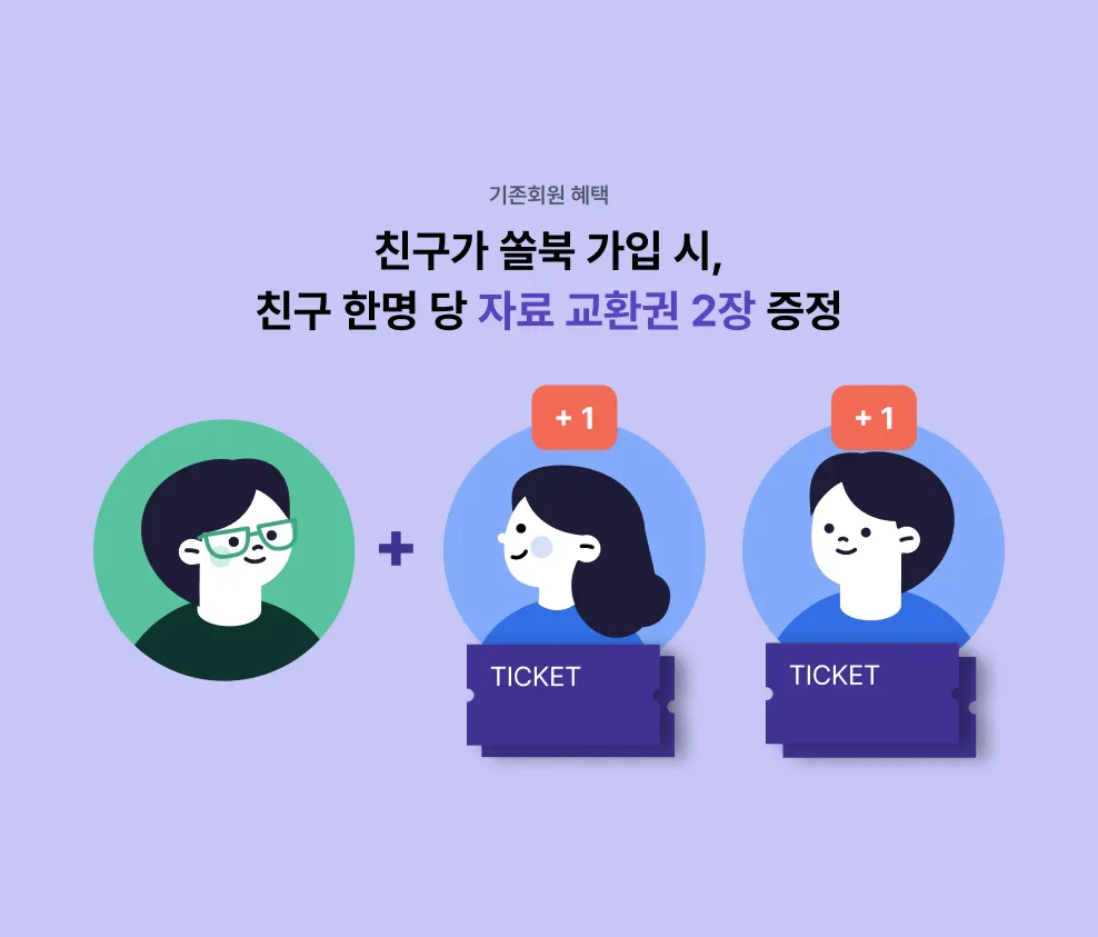 2. 친구에게 이벤트를 추천하시면 새로 가입한 친구 수만큼 자료 2개씩을 무료 증정해 드립니다!