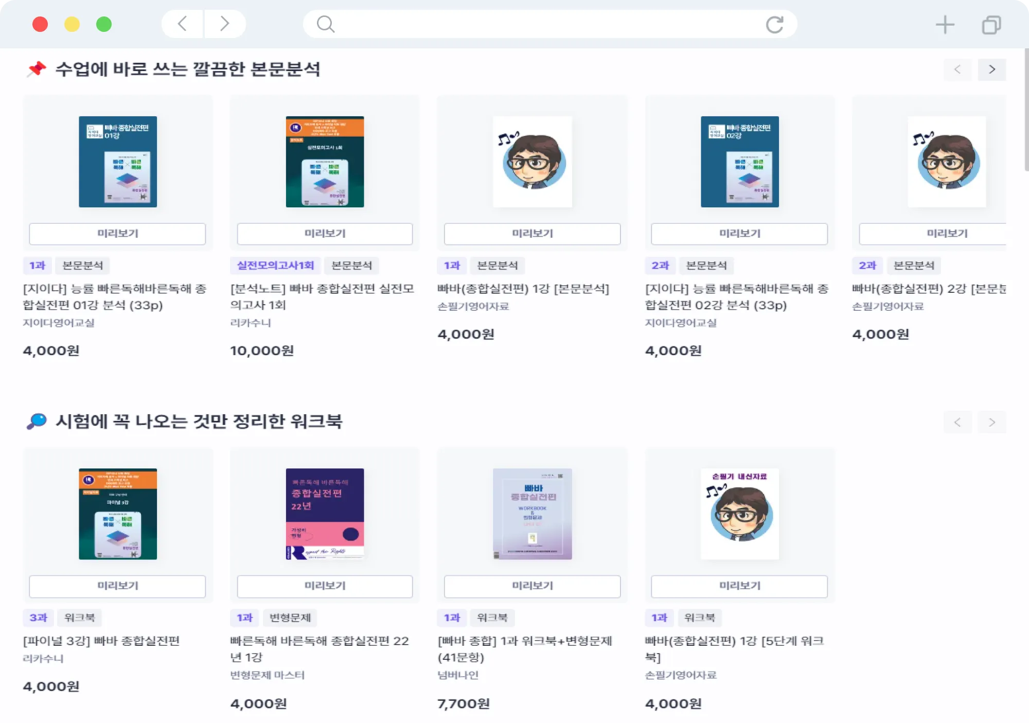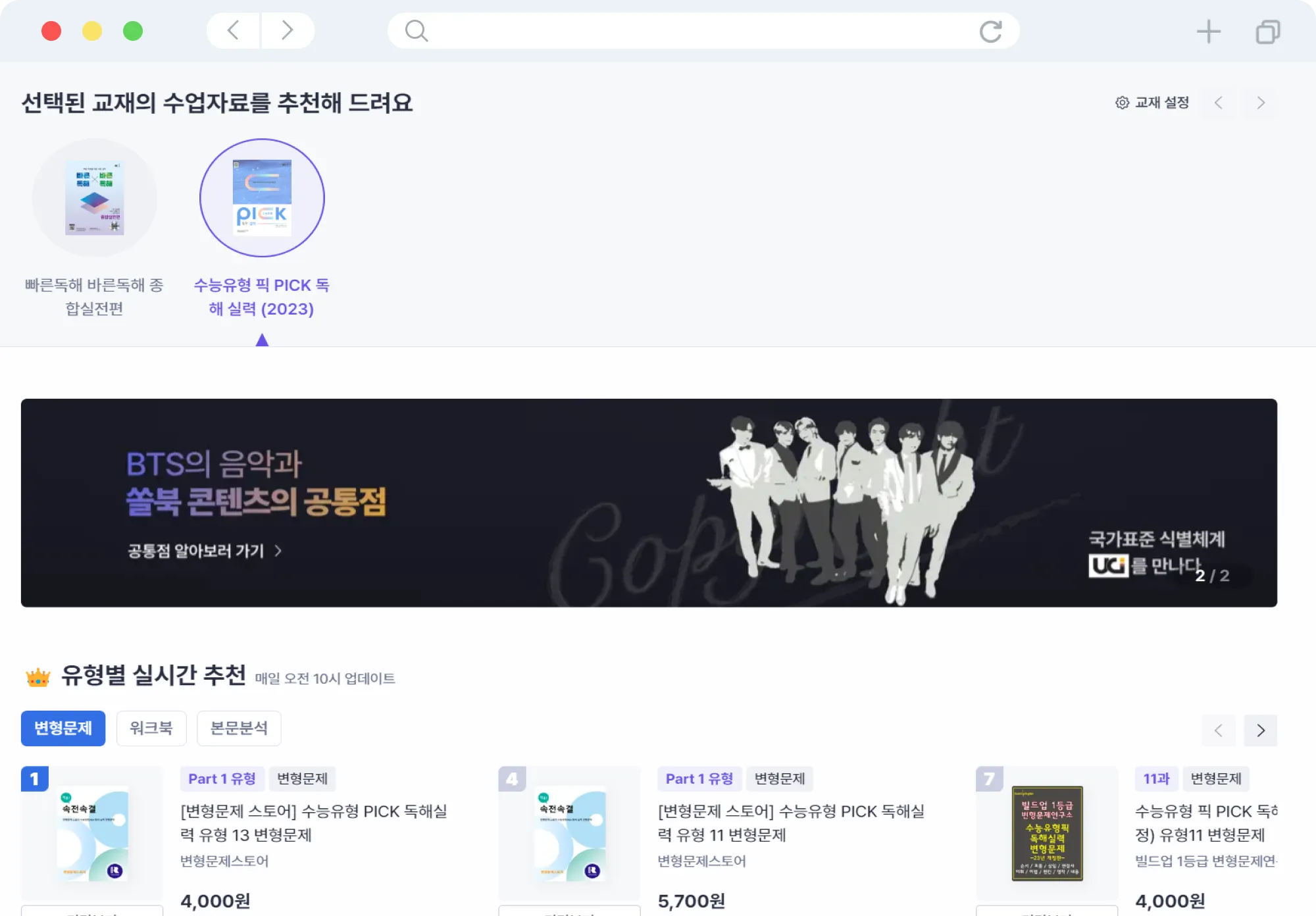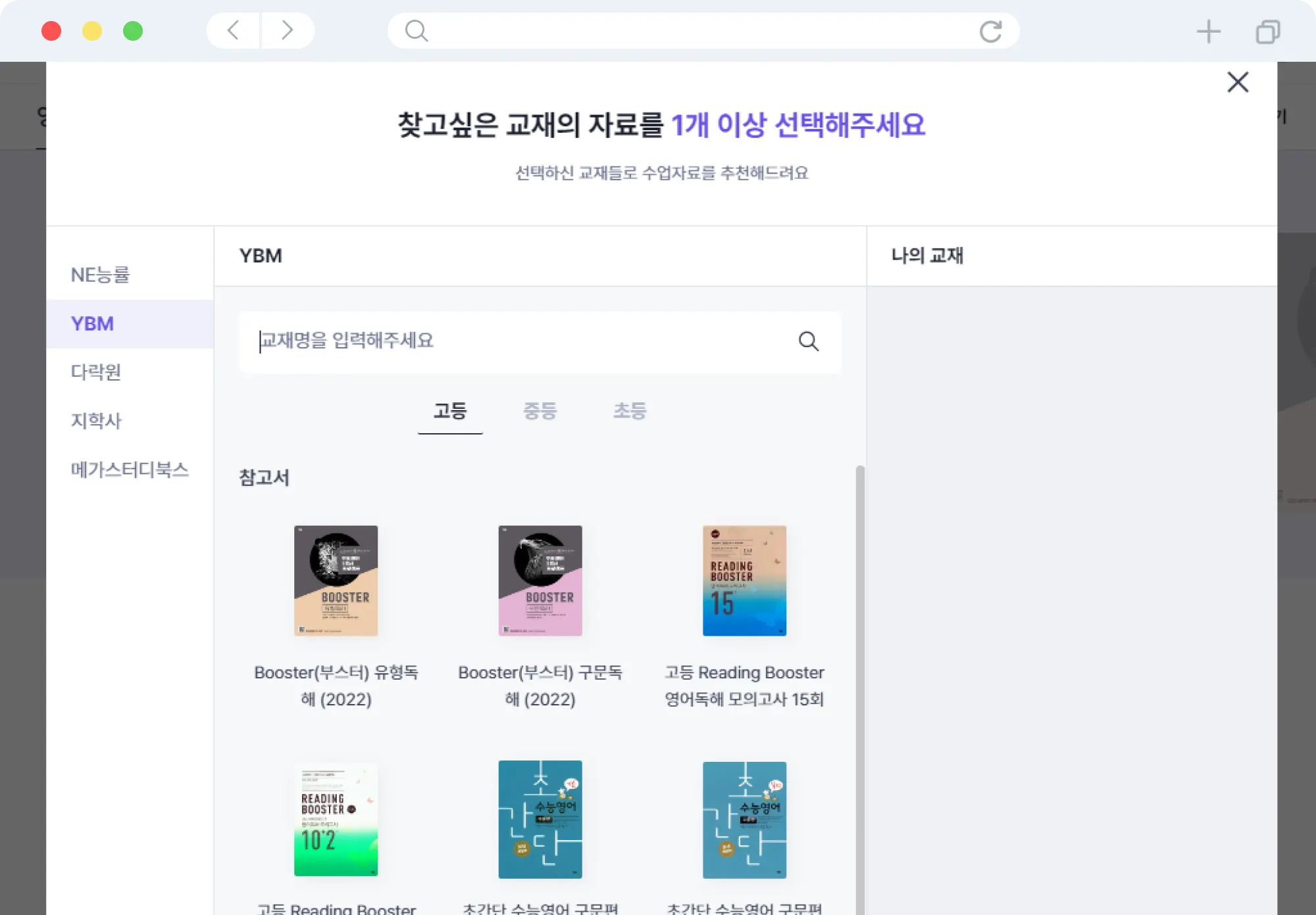 쏠북 메인에서 맞춤 교재를 설정하면 내가 사용하는 교재의 수업 자료만 확인하고 추천 받을 수 있어요.