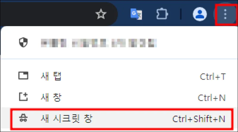 인터넷 창 우측 상단 점 세 개 버튼을 클릭하신 후에, ‘새 시크릿 탭’ 을 클릭하세요. 브라우저에 따라 ‘새 inprivate 창’, ‘새 시크릿 창’ 으로 표현되어 있을 수 있어요.