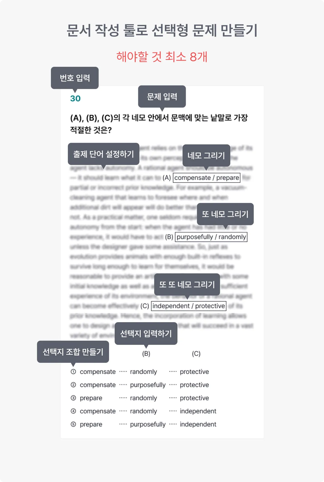 내신문제 유형별 템플릿이 준비되어 있어요. 학교별 경향에 맞춰 조금씩만 수정하면 끝나요.