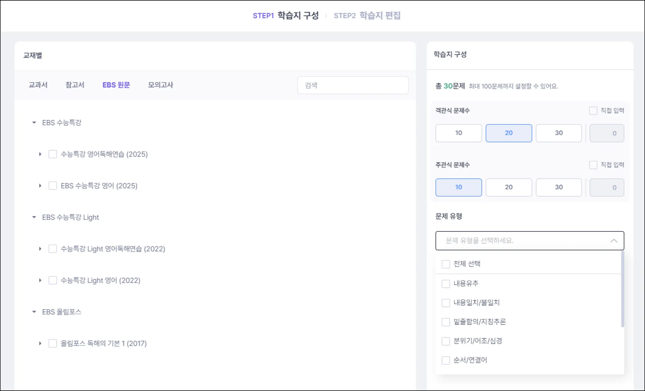 쏠북 엑스퍼트 이용권을 이용 중인 경우, 자료를 따로 구매하지 않아도 엑스퍼트에서 편집 가능한 모든 교재와 지문을 바로 편집하고 출력할 수 있어요.