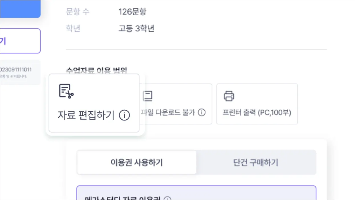 자료 구매 페이지에서 수업 자료 이용 범위에 [자료 편집하기]가 포함된 자료를 구매하면