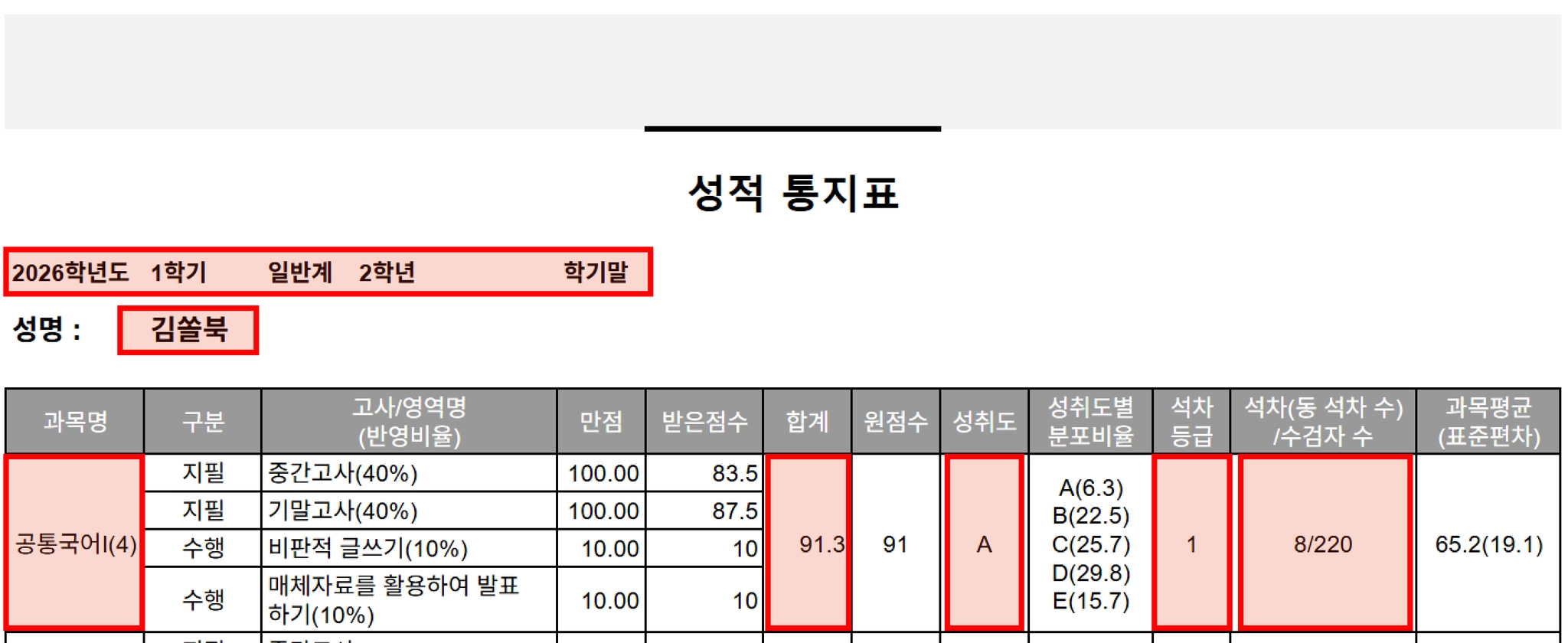 [연도] [학기] [학년] [이름] [과목명] [원점수] [성취도] [석차등급] [석차] [수강자 수]